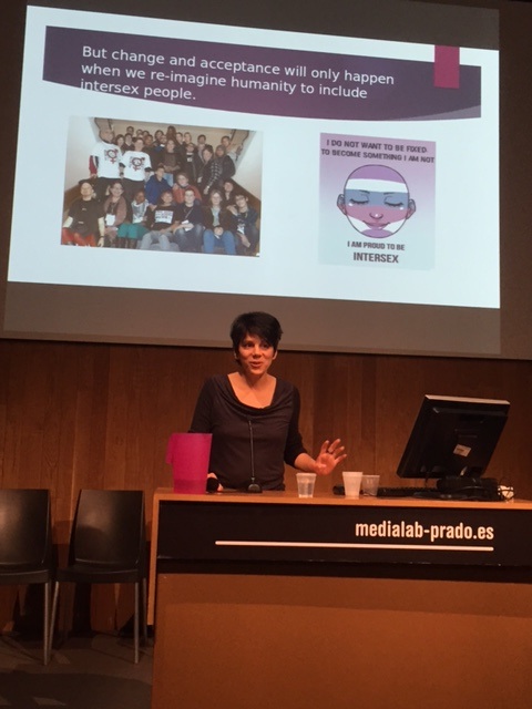 I gave a Keynote presentation, my first talk in Spanish, on March 23rd at the 10th International Workshop in Science, Technology & Gender (X Workshop Internacional Ciencia, Tecnologia Y Genero: Visiones Y Versiones de las Tecnologias Biomedicas, ) in Madrid, Spain. I’d like to give my DEEP thanks to allies Nuria Gregori Flor, Eulalia Pérez Sedeño, PhD, of the Department of Science, Technology and Society in Madrid, and Esther Ortega, PhD, for the honor of this invitation, and for all their help funding and organizing my visit to Spain for participation in this event, which has featured former keynote speakers such as the esteemed U.C. Berkeley professor Thomas LaQueur, author of the seminal text Making Sex. I got to spend time with an incredible group of beautiful, brilliant feminist academics and allies such as the 3 above mentioned organizers, as well as Veronica Sanz, PhD — who introduced me to these wonderful allies — and others like S. Garcia Dauder, PhD, Sara Lugo Marquez, PhD, of Colombia, Rebeca Ibanez Martin, PhD, Inma Hurt, Marta Velasco and Laura “Salta” Corcuera, and I am forever grateful for their warm welcome! I also finally got to meet fellow keynote speaker and esteemed colleague Professor Maria Patino Martinez, PhD — who fought and won the sports ruling against her, ending unfair international sporting body policies against intersex women with CAIS — and who co-authored, “Reexamining rationales of “fairness”: an athlete and insider’s perspective on the new policies on hyperandrogenism in elite female athletes” with me in the American Journal of Bioethics. A powerful, groundbreaking event and great time all around! 🙂